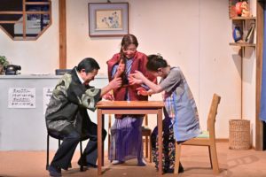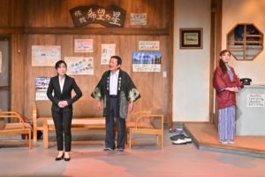 「先生」の指示に従い、慌てて出ていく社長良蔵と女将美保