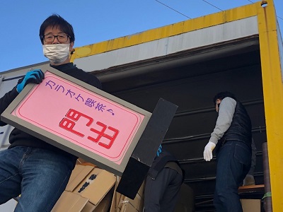 Page9 – 「倉庫整理と稽古と。」 2021年12月4日 最終更新日時 : 2021年12月4日 gekidan-funhouse 劇団倉庫にて、倉庫整理を行いました。 メインの仕事は、 前回公演で使用し、不要になったものの廃棄作業! トラックの中に廃棄するものを積み込んでいきます。 澤さん、みっちゃんも大活躍。 順調に荷物をトラックに入れてきます。 倉庫を見上げるみっちゃんとアマティー。 「明日への旅路」の時に使用した、 『カラオケ喫茶 門出』の看板を持って笑顔の団長。 この看板は廃棄しませんのでご安心を~。 稽古場です。 団長のPCにある資料をのぞきこむ皆な。 細かく丁寧に演出をつけていきます。 音楽、SEなどについて打ち合わせをする、団長とアマティー。 共有: