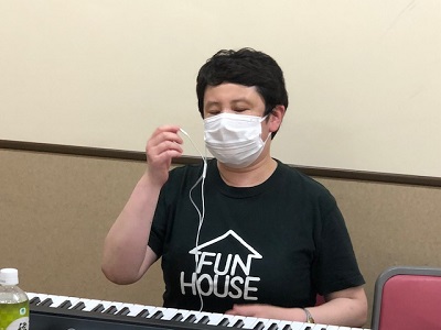 団長は音響の準備、アマティーはピアノ・PCの確認。