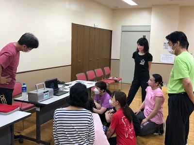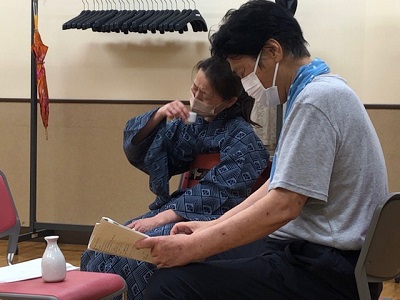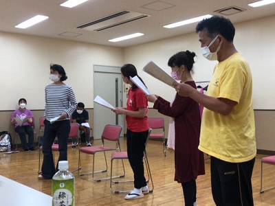 稽古前、諸々の準備をしたり打合せをする皆さん。