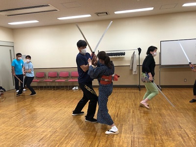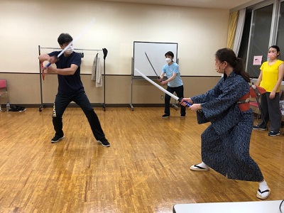 剣を交える、団長とゆみさん。