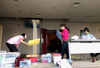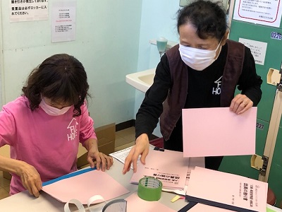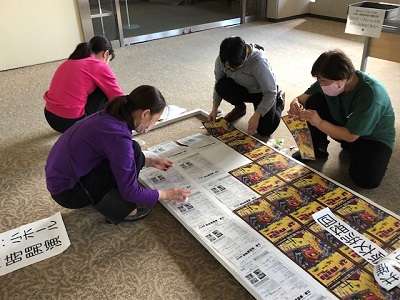 パンフレットの折り込み作業。