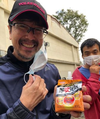 待っている間、エナジードリンクを飲む団長。