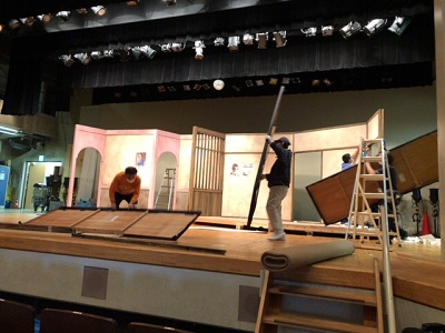 そして照明さん、音響さん、舞台セットの仕込みが始まります。